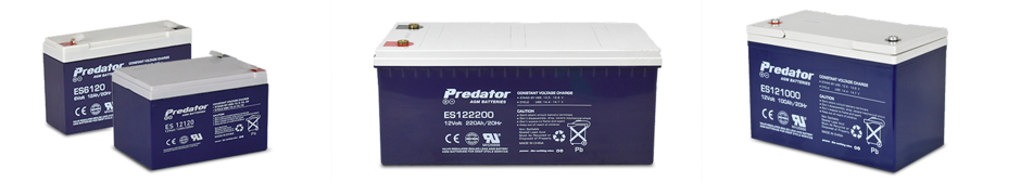Predator ES batteries are general purpose Absorbent Glass Mat (AGM) cycling batteries available in 1.3-260 Ah sizes. They are designed for every day general and light cycling duties and are ideally suited for standby or float applications such as: