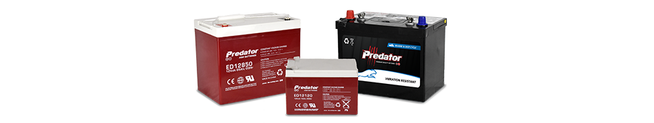 Most of the Predator ED range can be used within the marine environment, depending on application. Kayak enthusiasts can use the ED1290 or ED12120 to run equipment like fish finders or those with small trolling motors can use the ED12350 or ED12480. The ED12850/PDC100/PDC120 can be used on medium-large boats as house batteries then all the way up to the ED12260 being used as house batteries on large boats and yachts.